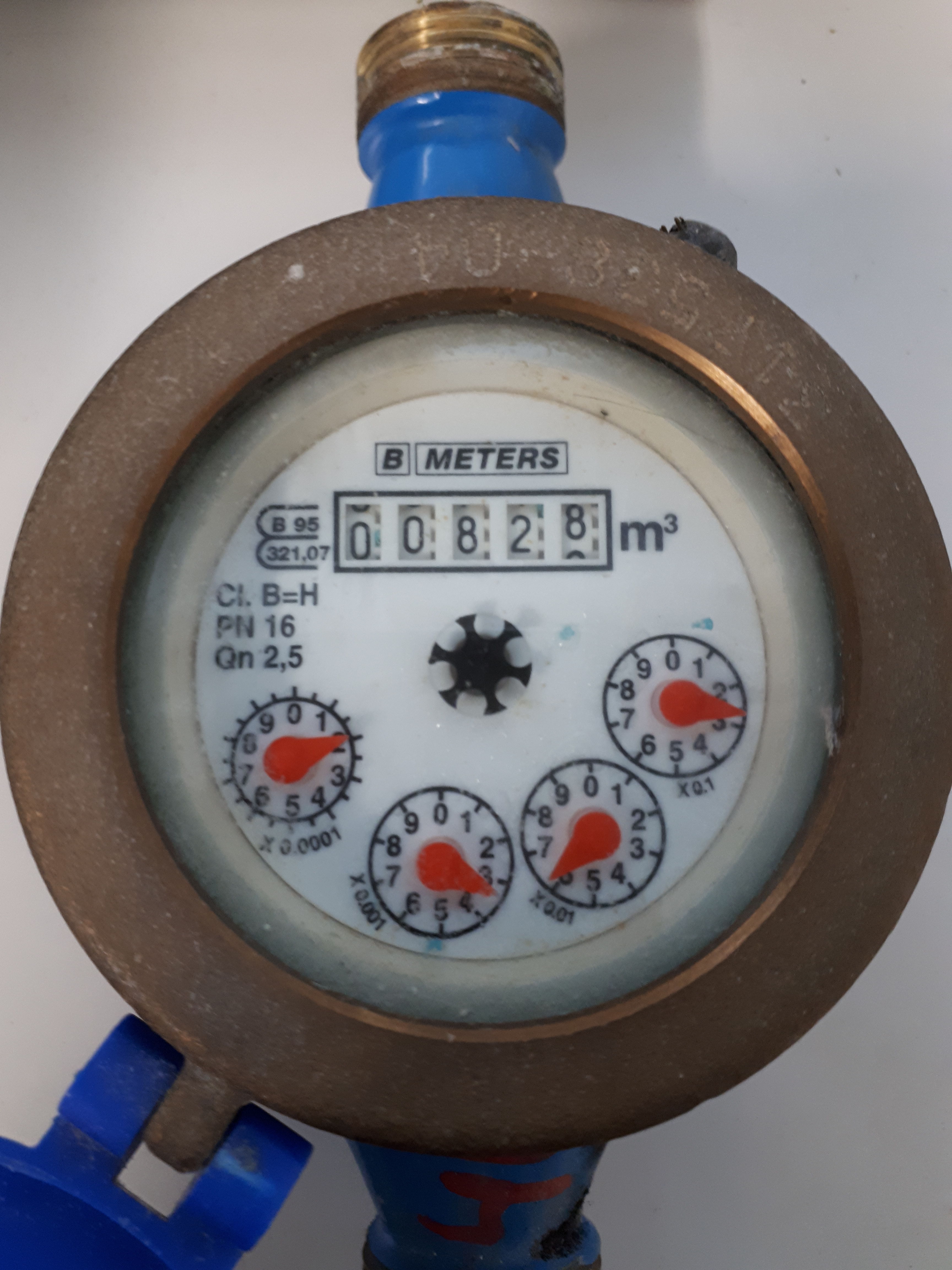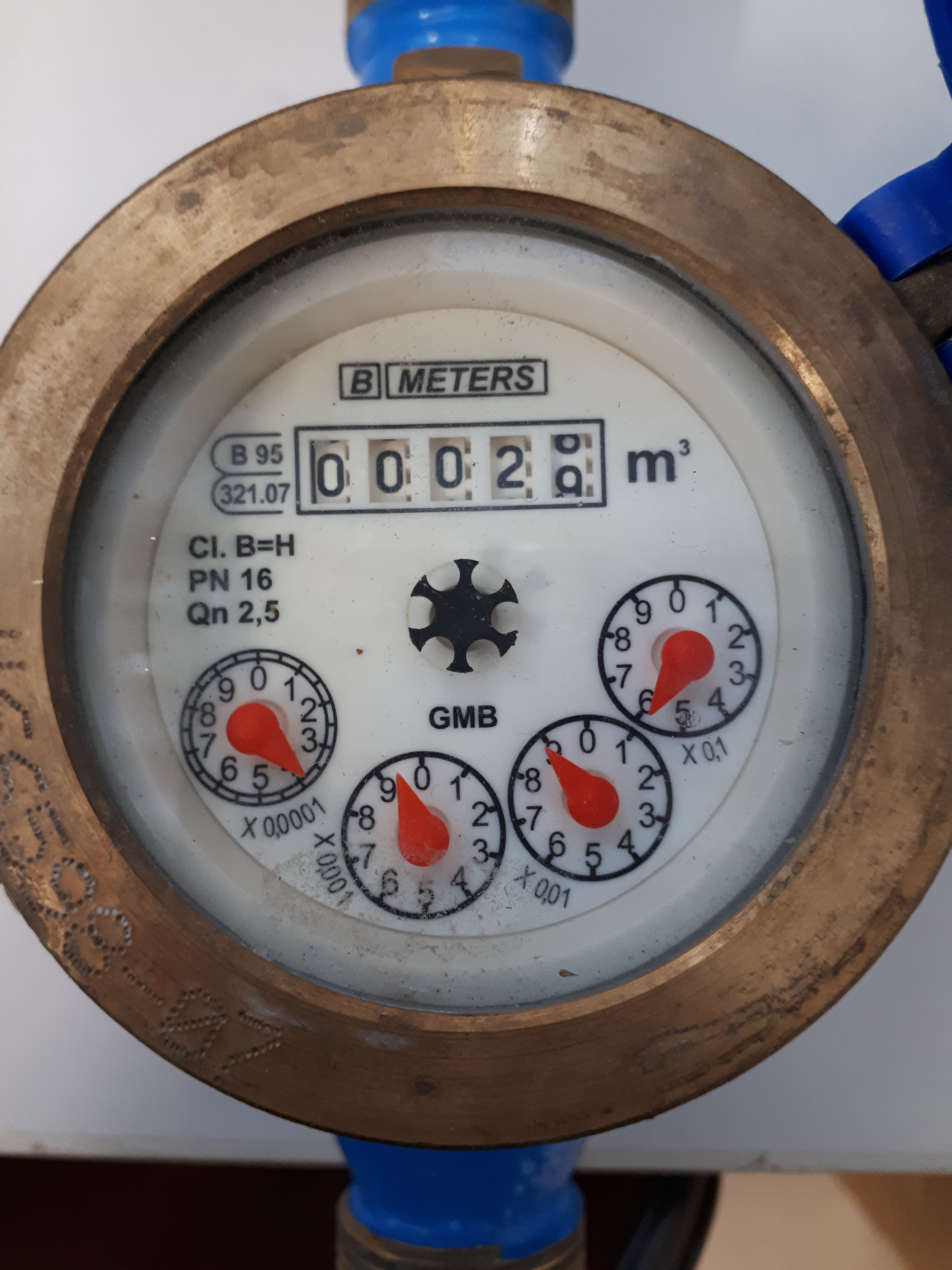 Uudenkaupungin Vedellä on käytössä viisinumeroisia vesimittareita. Numerolaskuri osoittaa täysiä kuutioita, myös viimeinen vaihtuva numero osoittaa täyttä kuutiota. Ilmoita aina vain täydet kuutiot ja lukeman edessä olevia nollia ei tarvitse ilmoittaa. Myöskään osakuutiometrejä näyttävien punaisten osoittimien lukemaa ei ilmoiteta.