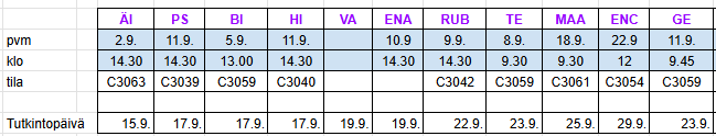 - Tenttien ajankohdat lisätään Wilmaan